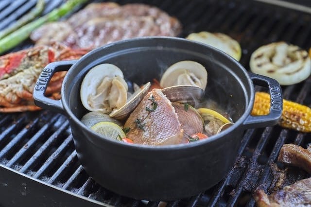 BBQ好きにはたまらない、本格的なアメリカングリルを使用した贅沢なプランが新登場!こちらはWeb予約限定となっていますのでご注意ください。メインは、とろけるような旨味の黒毛和牛のステーキと、香り豊かな熟成ラムチョップ。さらに、ジューシーな骨付きソーセージや、スパイシーなジャークチキンマリネも楽しめます。シーフードには、豪華なロブスター、風味豊かなホタテの和風だし醤油、魚介の旨味が凝縮されたカサゴと蛤のアクアパッツァをご用意。彩り豊かなスイートコーン、グリーンアスパラ、丸ごと玉ねぎのグリル野菜、そして、カプレーゼ、枝豆、スパイシーナチョスがサイドを飾ります。120分の飲み放題も付いて、お一人様12,000円。特別な日のディナーや、ちょっと贅沢な集まりにおすすめです。