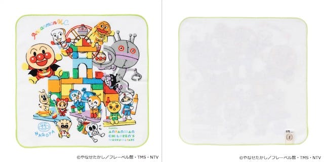 こちらも積み木の観覧車とアンパンマンの仲間たちがデザインされたハンドタオル。(約)33㎝×33㎝の少し大きめサイズで、水遊びなどにも活躍しそうです。カラーはオフ白で、価格は1,320円(税込)です。