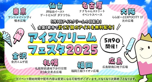 注意事項:各会場でのアイスクリームの配布は、無くなり次第終了となりますのでご注意ください。