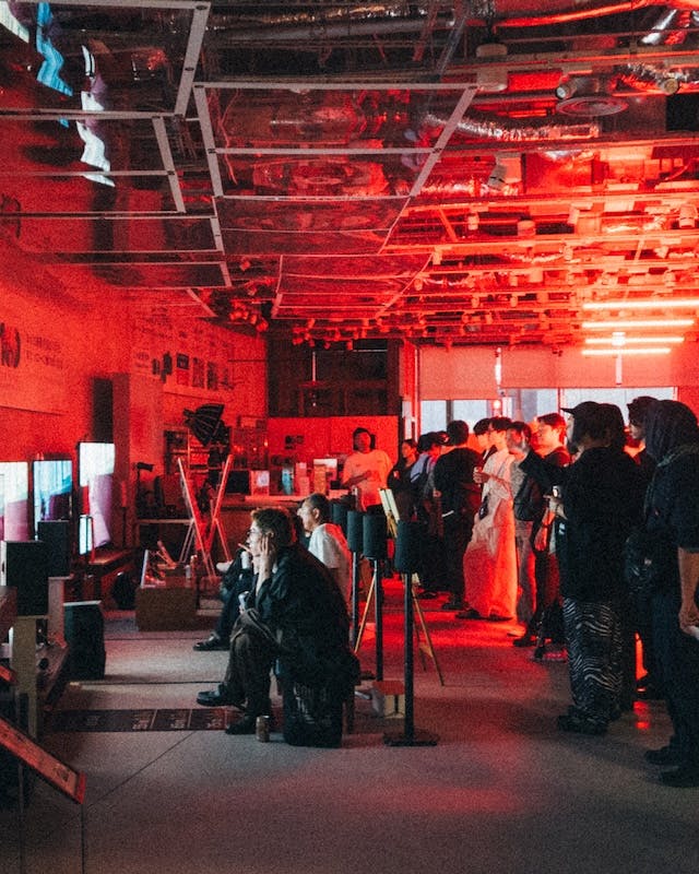 .mov(モブ)は、福岡を“動画の街”として盛り上げるため、福岡在住の有志動画クリエイターたちが立ち上げたカルチャー×動画のクラブパーティです。2024年3月に始動以来、規模と熱量を増しており、福岡音楽都市協議会とのコラボレーションやソニーストア 福岡天神のサポートも得るなど、地域に根ざした活動を展開しています。動画クリエイターだけでなく、音楽、ファッション、デザインなど多様なクリエイターが集い、ジャンルを超えた表現と出会いの場として注目されています。