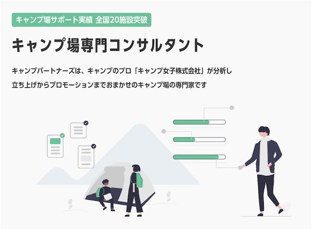 キャンプ女子株式会社は、「アウトドアをもっと自由に、もっと楽しく」をモットーに、2018年に福岡で誕生したアウトドア・ベンチャー企業です。キャンプを軸に、女性、海外、地域、伝統といった多様な価値をつなぐ事業を展開しています。主な事業として、キャンプ場コンサルタントサービス「キャンプパートナーズ」、女性向けキャンプコミュニティ「キャンジョ/ #camjyo」、日本のクラフトマンシップを海外へ輸出する「WAGYUNINJA」、外国人旅行客向けキャンピングカーレンタル「osoto campervan」などがあります。