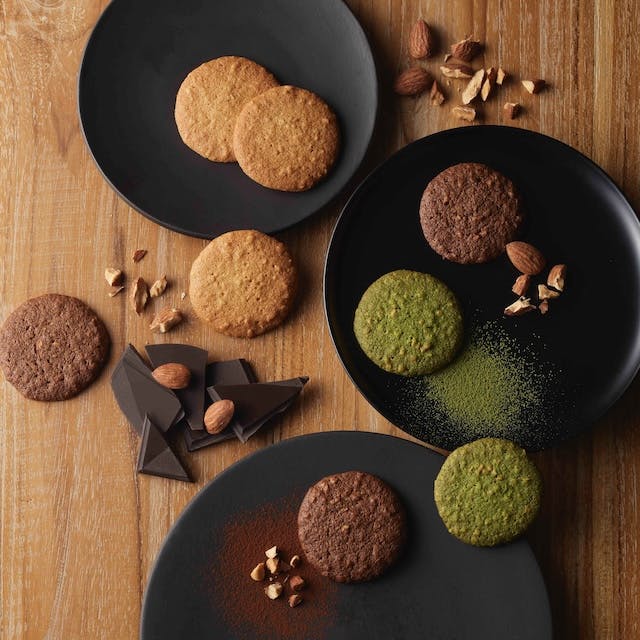 シンプルなアーモンド味、ほろ苦いチョコレートとアーモンドが絶妙なチョコアーモンド味、宇治抹茶の風味とアーモンドのアクセントが楽しめる抹茶アーモンド味の3種類。沖縄県産のさとうきびの原料糖のみで作られた「本和香糖(ほんわかとう)」を使用しており、まろやかな甘さとサクッとした食感が特長です。