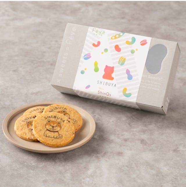 ハチ公のイラストがプリントされたShinQs限定のサブレ。アーモンド、マカダミア、ヘーゼルの3種類のナッツを贅沢に使用し、米粉を使った軽い食感の生地に、砕いたナッツを加えた上品な味わいです。個包装になっているため、お土産として配りやすいのも嬉しいポイントです。