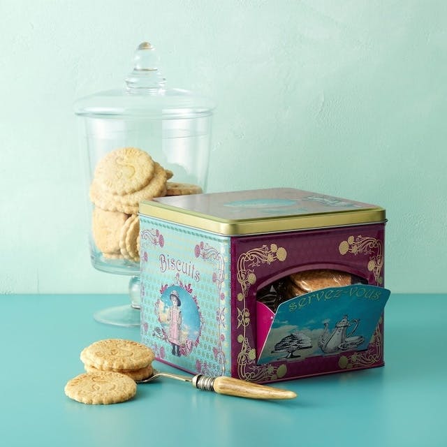 箱の扉からもサブレを取り出せる、まるで宝箱のようなワクワクする仕掛けが楽しいクッキー缶。ピュアバターの風味が好評です。フランス人形や木馬が描かれたアンティーク風のデザインが、どこか懐かしさを感じさせます。販売場所は地下2階 イベントスペース、販売期間は4月24日(木)~30日(水)です。