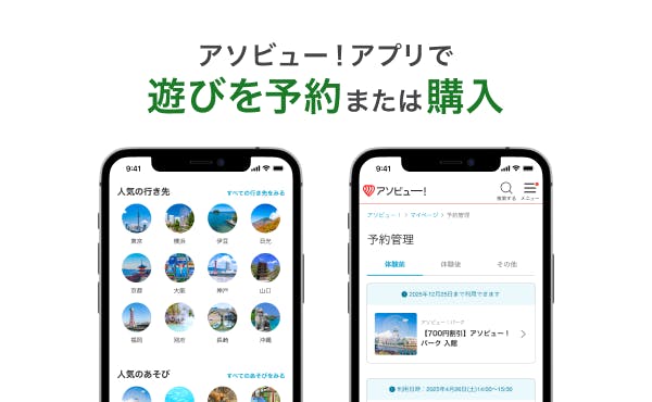 ・対象期間でアソビュー!公式アプリを初めてダウンロードされた場合でも、アソビュー!公式アプリで決済された2回目以降の予約・購入には、今回のキャンペーンは適用されませんので、ご注意ください。