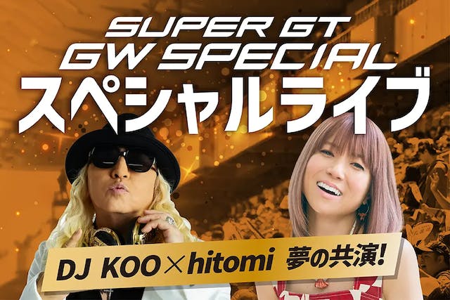 富士スピードウェイで開催される「SUPER GTゴールデンウィークスペシャル」では、DJ KOOさん(TRF)とhitomiさんによる『GW スペシャルライブ』が行われます。決勝レース直前のスタートセレモニーでは、hitomiさんが国歌独唱、DJ KOOさんがグリーンフラッグを担当し、会場を盛り上げます。さらに、コース上には新たに“アリーナエリア”が設けられ、ファンはアーティストのパフォーマンスを間近で楽しむことができます。