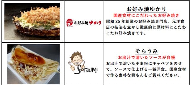 - そらうみ: お出汁で溶いた小麦粉にキャベツをのせて作る一銭洋食。素朴な粉もんをご賞味あれ!