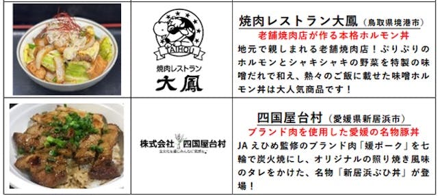 - 四国屋台村(愛媛県新居浜市): 新居浜ぶっかけ飯。ブランド豚を使った愛媛の名物丼!