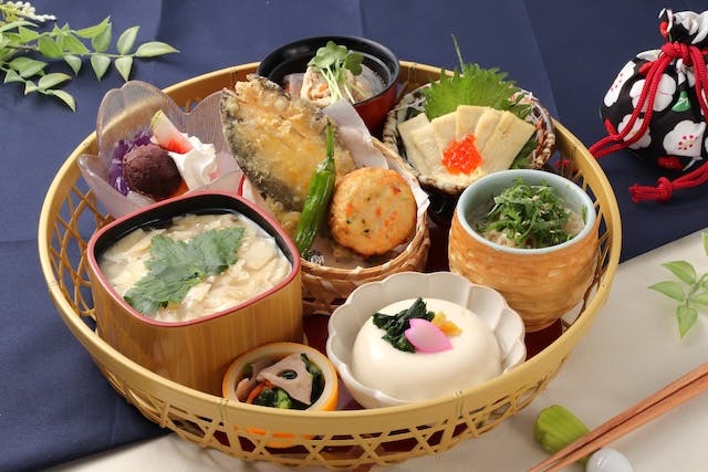 栃木を代表する食材「日光ゆば」を味わえる「日光ゆばの花籠御膳」。