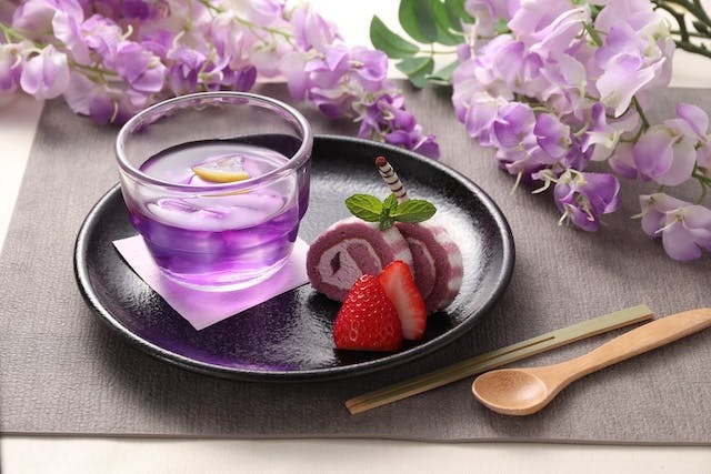 大藤まつり期間限定のフードメニューも多数登場! 藤をイメージしたスイーツや、栃木の食材を使ったグルメなど、目にも舌にも楽しいメニューが揃っています。