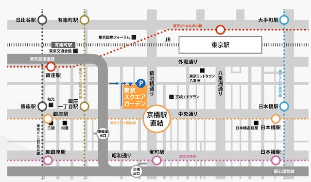 - アクセス: 東京メトロ銀座線「京橋」駅直結、東京メトロ有楽町線「銀座一丁目」駅徒歩2分、都営地下鉄浅草線「宝町」駅徒歩2分、JR「東京」駅徒歩6分、JR「有楽町」駅徒歩6分