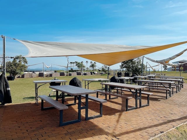 こちらも屋根付きの席ですが、ビーチからは少し離れています。 受付コンテナに一番近いので、小さなお子様連れの方や、お体の不自由な方でも利用しやすいお席です。
