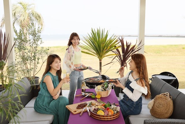 ビーチに最も近い屋根付きの席。 デートや仲間とのBBQにぴったり! 天候を気にせず、最高のロケーションでいつもとは違うBBQを楽しめます。 ラグナシアの花火を間近で見たい方にもおすすめです。
