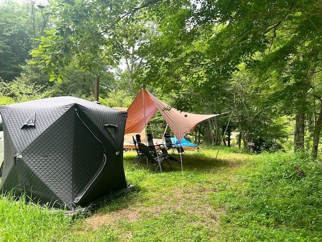 ゾレンキャンプ場のテントサウナは、木の板で室内が作られており、温便座シャワートイレや更衣室付きシャワーも完備。川遊びの後も、施設でさっぱりと汗を流せるので安心です。初心者でも気軽に楽しめる施設なので、ぜひ足を運んでみてください。