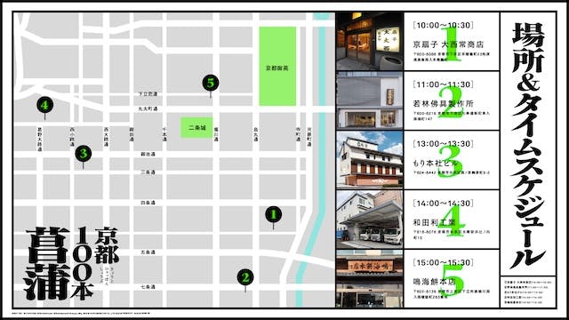 イベントは午前10時に京扇子 大西常商店からスタートし、15時までに京都市内の5つの会場を自転車で巡ります。各会場で「菖蒲打ち」体験と女将との交流を楽しめる、特別な一日です。