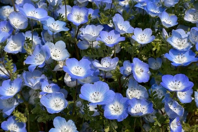 A. 毎年植えています。ネモフィラは1年草で結実すると枯れてしまうため、6月頃に刈り取り11月から翌年の種を蒔きます。