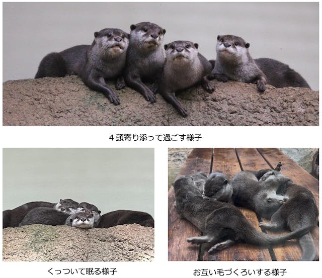 4頭のコツメカワウソの仲睦まじい姿に癒される