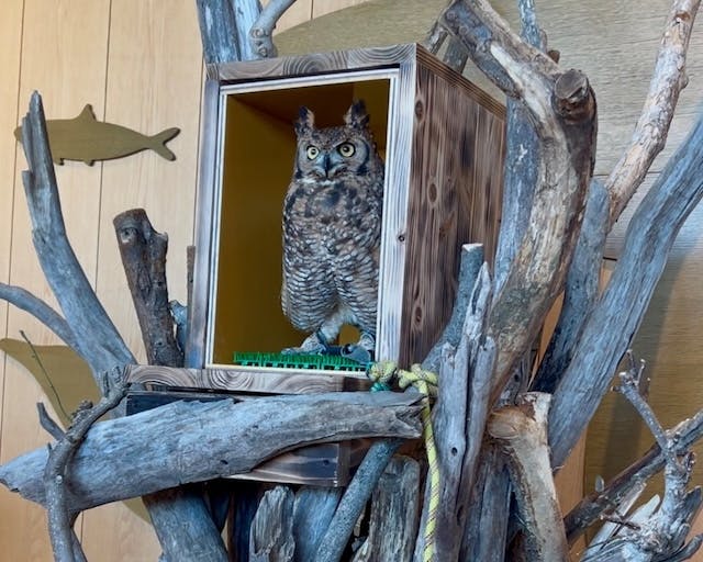 エントランスにアフリカワシミミズク「チョウジ」が登場!