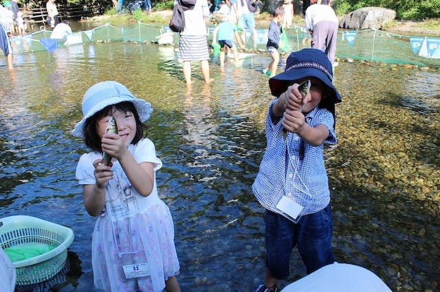 木曽川水園(自然発見館)では、自分で魚を捕まえて、 その場で塩焼きにして味わえる、ワイルドな体験ができます! 捕まえた魚を自分で焼いて食べるのは、普段なかなかできない貴重な体験。 家族みんなで盛り上がること間違いなし!