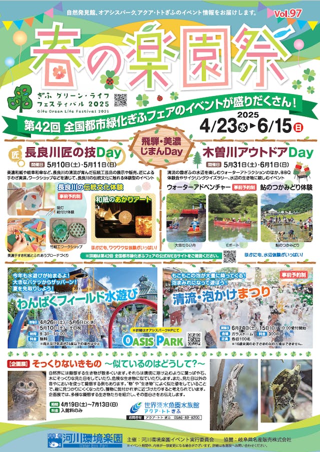 - 場所: オアシスパーク(県営公園)、自然発見館・木曽川水園(国営公園)、アクア・トトぎふ(水族館)