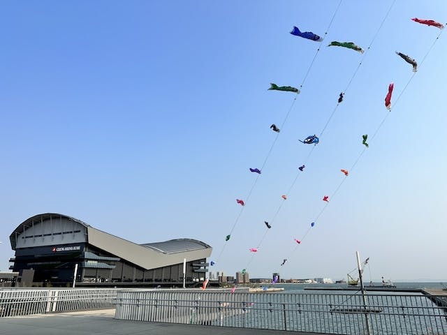 これらの素晴らしい風景とともに、心地よい海風に吹かれ、空を泳ぐこいのぼりの姿をゆっくりと鑑賞できます。