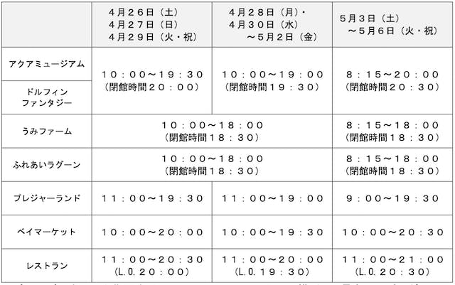 2025年4月26日(土)~5月6日(火・祝)の営業時間