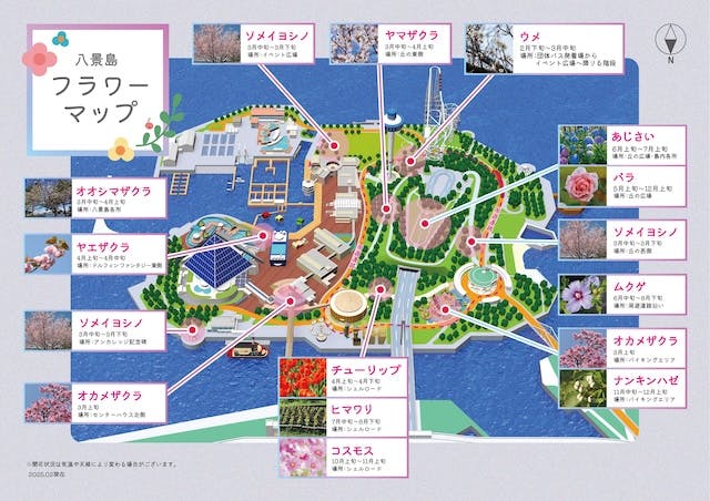 八景島では、水族館やアトラクションだけでなく、島内の様々な場所で季節の花々を楽しめます。 バラ、あじさい、コスモスなど、色とりどりの花を巡りながら、思い思いの時間を過ごしましょう。