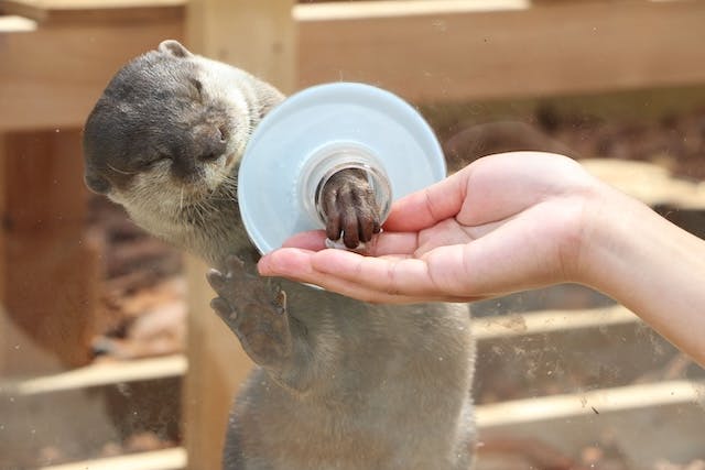 アクアミュージアムでは、コツメカワウソに ごはんをあげて、手のひらにタッチできる「コツメカワウソとあくしゅ」も。 器用にごはんをつかむ姿や、ぷにぷにの感触を間近で体験できます。