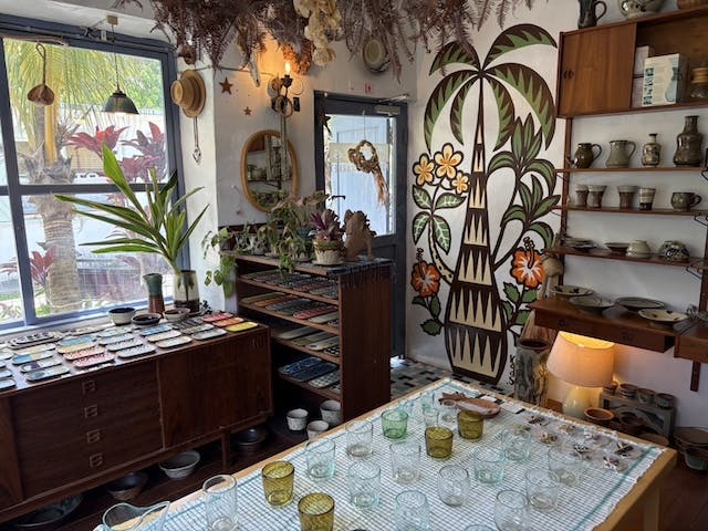 沖縄県浦添市の港川外人住宅エリアにあるセレクトショップ。やちむんや琉球ガラスなどの沖縄の工芸品をはじめ、オリジナルのプロダクトやアクセサリーなど、日々の生活を豊かにするアイテムを取り揃えています。