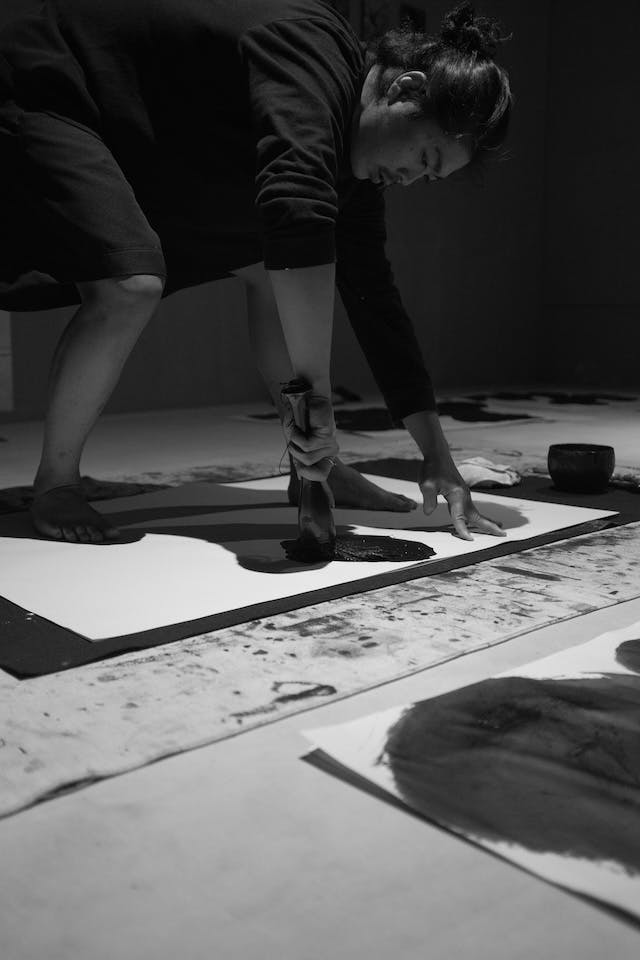 1992年宮古島生まれの新城大地郎さんは、幼少の頃より書道に親しみ、沖縄の精神文化を背景に、現代的で自由なスタイルで伝統的な書に新たな光を当てています。国内外で個展を開催する他、tricot COMME des GARCONSやHERMESの作品に起用されるなど、その活動は多岐に渡ります。2022年には故郷の宮古島に「PALI GALLERY」をオープンしました。