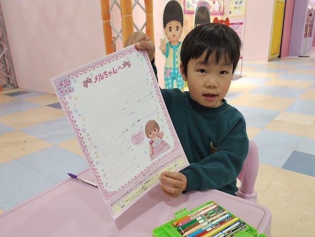 メルちゃんにお手紙を書くと、イベント限定のメルちゃんからのお返事ポストカードがもらえます。