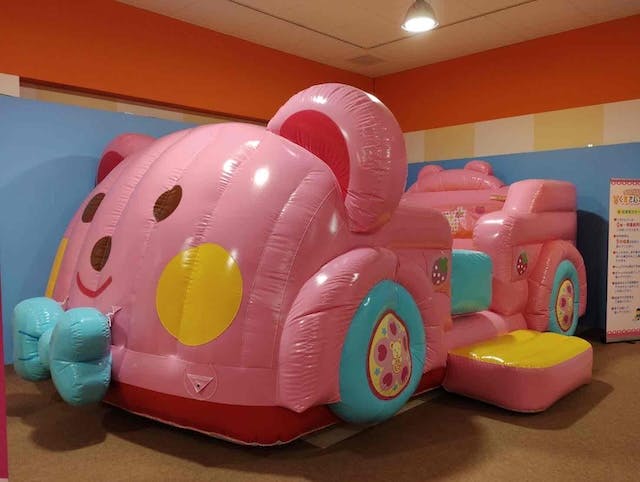 くまさんカーをイメージしたふわふわ遊具が登場! 中に入って体を動かして楽しめます。