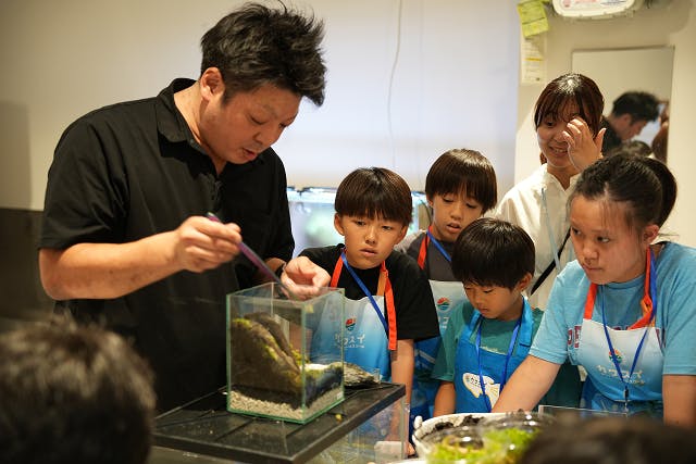 水族館の裏側を探検した後は、世界に一つだけのオリジナルミニ水槽づくりに挑戦します。プロも使用する個性豊かな石や流木、水草を自由にレイアウトして、自分だけの水中世界を創造しましょう。完成した水槽は持ち帰ることができるので、夏休みの素敵な思い出になります。