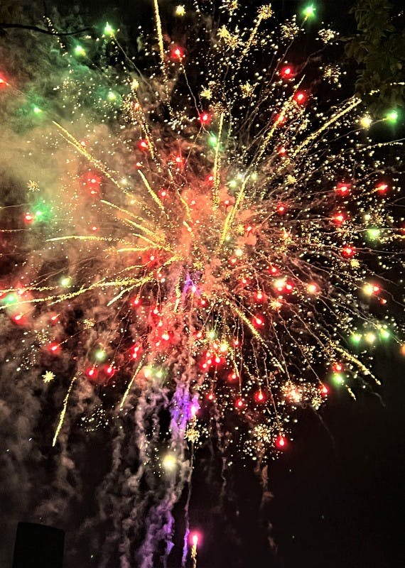 19時45分からは約5分間の打ち上げ花火が楽しめます。和太鼓の演奏や人気楽曲に合わせた花火が夜空を鮮やかに彩ります。