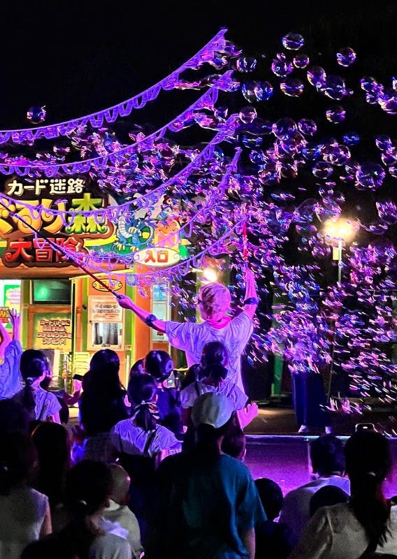 9月13日(土)・14日(日)には、イルミネーションの中で美しいシャボン玉ショーが開催されます。18時からはシャボン玉体験も楽しめます。