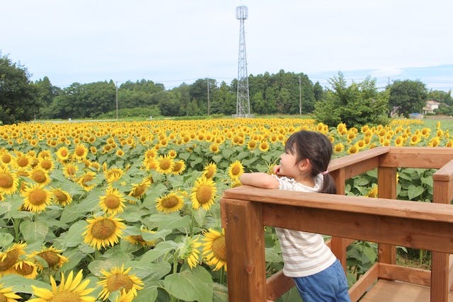 ひまわり畑の中には、高さ約2メートルの見晴台が設置されており、ひまわりを上から見下ろすことができます。散策の後は、見晴台から広がる黄金の大海原を堪能してみてはいかがでしょうか。