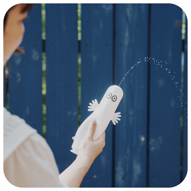 「湖上のテラス」グランドオープンを記念して、ムーミンバレーパークに来園する4歳から高校生までのお子さまに、ニョロニョロウォータートイをプレゼント!底のふたを外して水を入れ、押し出すとニョロニョロの頭から水が勢いよく噴き出す楽しい仕掛けです。「ムーミン谷のじゃぶじゃぶプール」はもちろん、パーク内の様々な水遊びスポットで使ったり、フォトプロップスとして写真撮影に活用するのもおすすめです。