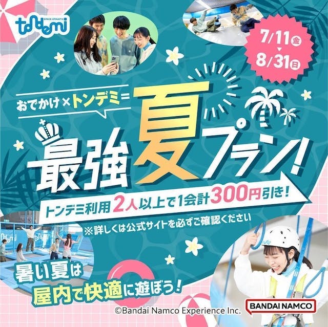 2人以上でお得に遊べる♪「おでかけ×トンデミ=最強夏プラン」を実施