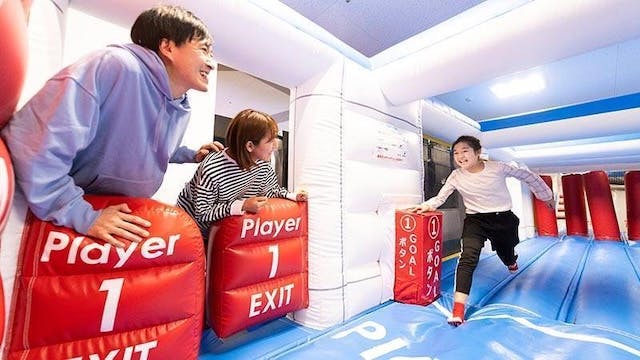 大人から子どもまで、安全に楽しめる新感覚エアー障害コース「エアーラン」。トンデミ横須賀に導入されているのは、競争のドラマ性がより進化した「リバースバージョン」。全長54mのコースを折り返して戻ることで、行きと帰りで異なる障害を楽しめます。親子や友人とタイムを競いながら、コース攻略の楽しさを体験しましょう。