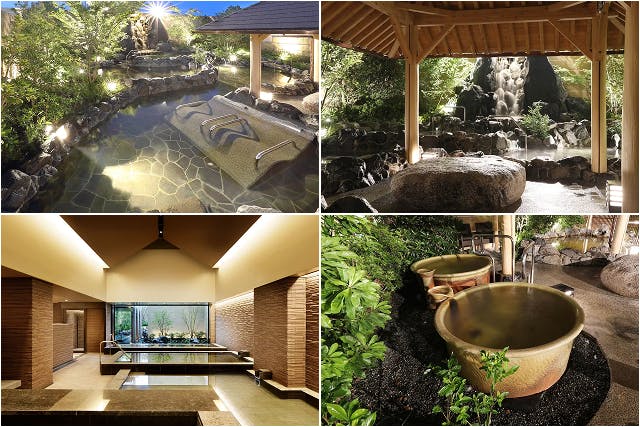 日本庭園に囲まれた"露天大浴場"、炭酸泉や暦風呂が揃う"屋内大浴場"など、多彩なお風呂とフィンランド式ドライサウナと流水式アロマナノミストサウナが人気です。館内着無料貸出・タオル無料貸出の嬉しいサービス付きです。