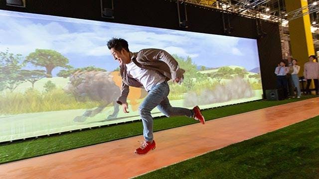 巨大スクリーンに映し出される猛獣から全力ダッシュで逃げ切れ!陸上部経験者の本気や、意外な俊足メンバーの発見も。逃げ切れた時の爽快感は格別!