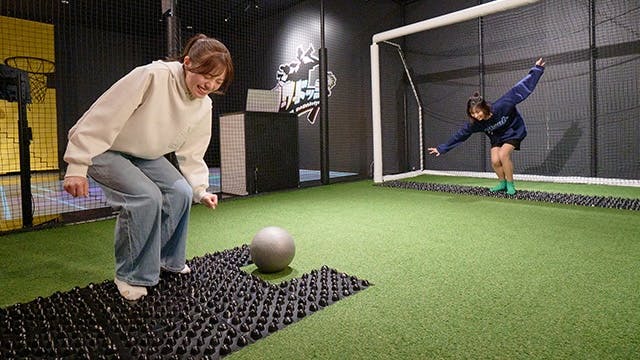 罰ゲームでおなじみの足つぼマットの上でPK対決!ボールを蹴る衝撃と足裏の刺激のダブルパンチで、普段はクールな友達も思わず変顔に。見ている方も、蹴る方も、全員が笑い転げる鉄板アクティビティです。