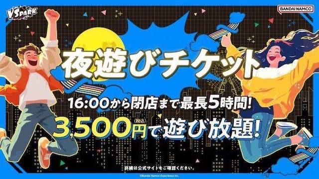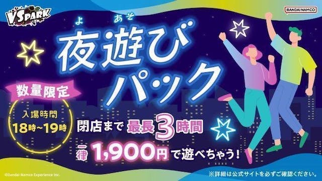 夜は待ち時間が少なめで遊びやすいことも!夕方から夜にかけてお得に楽しめるプランが、一部店舗で用意されています。以下はあくまで一例です。ご来場前に必ず公式サイトで最新情報をご確認ください。(実施店舗・価格・販売方法は変更になる場合があります)。