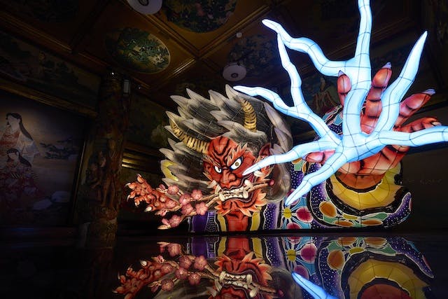 ホテル雅叙園東京の「百段階段」で行われるこのアート企画展は、和のあかりアートが施された幻想的な空間を楽しむことができます。「鬼」をテーマにした作品群は、古来からの伝説と現代アートが融合した美しい演出が魅力です。手を触れずに演奏する不思議な電子楽器テルミンの奏者、ヨダタケシ氏によるオリジナル楽曲や光、香り、風の演出が、訪れる人々を非日常の世界に誘います。カップルや友人同士での訪問にぴったりの、心に残る体験が待っています。
