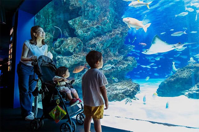 サンシャイン水族館は、東京・池袋のサンシャインシティ ワールドインポートマートビル内にある水族館です。「天空のオアシス」をコンセプトとしており、さまざまな生き物たちの生活する姿と、ワクワクするような展示方法によって、癒しの空間を作り上げています。屋外にある「マリンガーデン」は、頭上に設置された水槽で泳ぐ生き物たちを見られるスポット。池袋のビル街を優雅に飛んでいるかのような、ペンギンやアシカの姿に子供も大興奮すること間違いなしです。