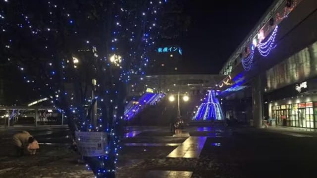 | 特徴/見どころ | 駅前を華やかに包む、クリスマスツリー風のイルミネーションとブルーのライトアップ |