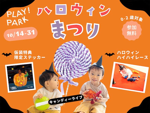 PLAY! PARKで開催される「ハロウィンまつり」は、0〜2歳の子どもとその家族向けの特別なイベントです。小さな魔女や魔法使いに変身して、楽しいアクティビティに参加しましょう。キャンディ型のマラカスを使った演奏会や、ハイハイレースなど、子どもたちが楽しめる内容が盛りだくさんです。家族での思い出作りにぴったりなこのイベントは、子どもたちにとって特別なハロウィンの体験を提供します。