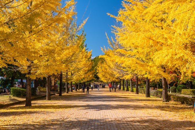 秩父ミューズパークの紅葉は、スカイロードを彩る約500本のイチョウ並木が見どころです。秋の空の下、黄金色のじゅうたんと青空のコントラストは、まさにフォトジェニックな瞬間を演出してくれます。家族や友人と共に、黄葉のトンネルを散策したり、スカイトレインに乗って上空からの眺めを楽しむこともできます。自然の中で心身ともにリフレッシュできること間違いなしです。