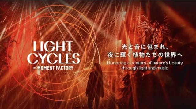 「Light Cycles Kyoto」は、日本最古の公立植物園である京都府立植物園で開催される、光・音・アートが融合した没入型ナイトイベントです。世界最高峰のマルチメディア・スタジオがプロデュースを手掛け、植物同士の“対話”を可視化する4つの体験エリアが五感を刺激します。 クリスマスの期間はハリモミの木の特別ライトアップも行われ、冬の幻想世界を肌で体感できるのが魅力です。