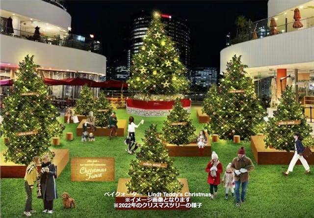 横浜ベイクォーターでは、人気ファッションブランド「niko and...」とコラボしたクリスマスイルミネーションを開催しています。3階のメイン広場に、高さ約8mの生木を含む10本のクリスマスツリーが登場!豊かな緑と煌めくイルミネーションで彩られ、クリスマスの森を演出します。 ツリーや足元には「niko and ...」オリジナルのオーナメントが飾られており、ブランドの世界観があふれる、あたたかい雰囲気が魅力です。